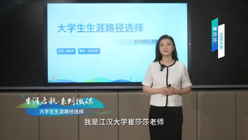 大学毕业后该如何安排呢?是出国、读研、还是直接找工作?创业、进入企业、还是考公务员?留在大城市还是回家乡?在进行生涯决策选择时,你是否也患上过选择困难症呢?如果你正处在迷茫期,还不清楚该如何选择,本周一起来听江汉大学的崔莎莎老师为大家讲解《大学生生涯路径选择-如何做好决策》。