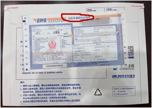 采取EMS法律文书专递邮寄送达时,注意识别信封左下方及邮单均标有“法院专递”标志。