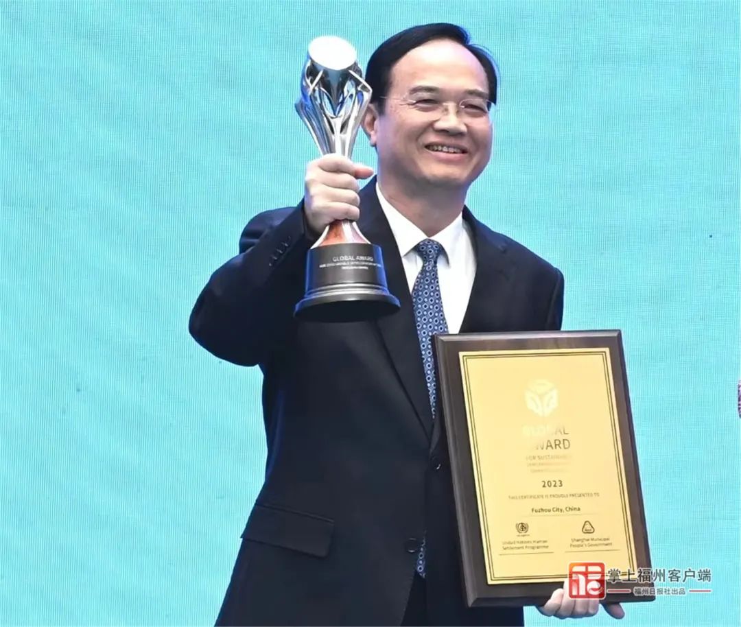 在活动现场,福州被授予首届全球可持续发展城市奖(上海奖),是全球5个被授予这一荣誉的城市之一。省委常委、市委书记林宝金出席活动,并代表福州领奖。
