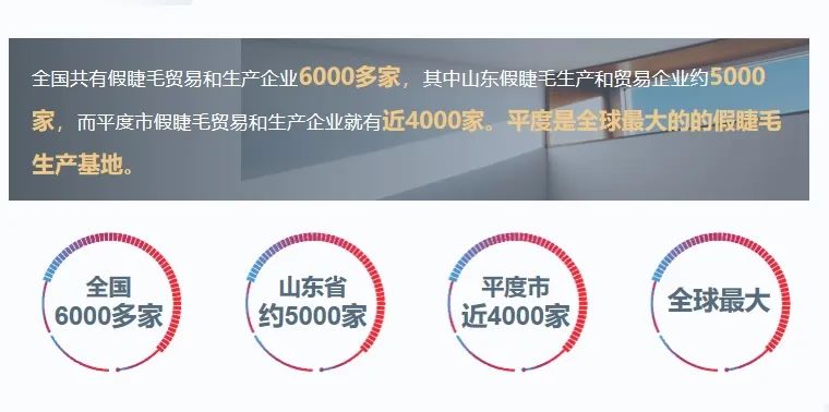 2023年10月,在由全国工商联美容化妆品业商会美眼美睫专委会、平度市美妆睫毛协会、美妆在线新经济产业园、平度市城市开发集团有限公司共同发布的《中国美睫产业白皮书》中表明,全国共有假睫毛贸易和生产企业6000多家,其中山东假睫毛生产和贸易企业约5000家,而平度市假睫毛贸易和生产企业就有近4000家。平度成为名副其实的全球最大的假睫毛生产基地。