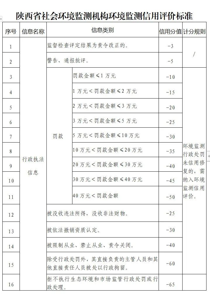 陕西省社会环境监测机构环境监测信用评价标准见附件。