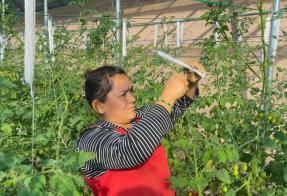 喀什市英吾斯坦乡裁缝艾日克村村民托合塔吉·吾麦尔说:“这个品种的小番茄味道好、产量高,一个大棚预计能产9吨,目前价格还不错。”