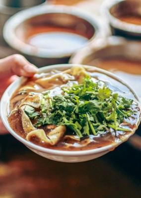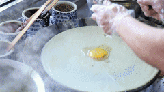 “哥吃的不是饭,而是寂寞”。这样的场景在天津,不存在的,就算一人食,也绝无寂寞感,因为有浓郁的烟火气来治愈。天津人的幽默、从容、闲适随处可感,还有行为艺术得以一见。在天津,许多早点铺都以“几姑、几嫂、某姐、某姨”命名,母性气息、家常气息浓厚。也许在某个档口为自己摊煎饼的是一位老阿姨,动作不疾不徐,食物慢慢发生美拉德反应,香气四溢扑鼻,心中油然而生杨绛先生那句话“人生最曼妙的风景是内心的淡定与从容”。这时才能明白,等一个煎饼馃子,也是在等生活的热望。