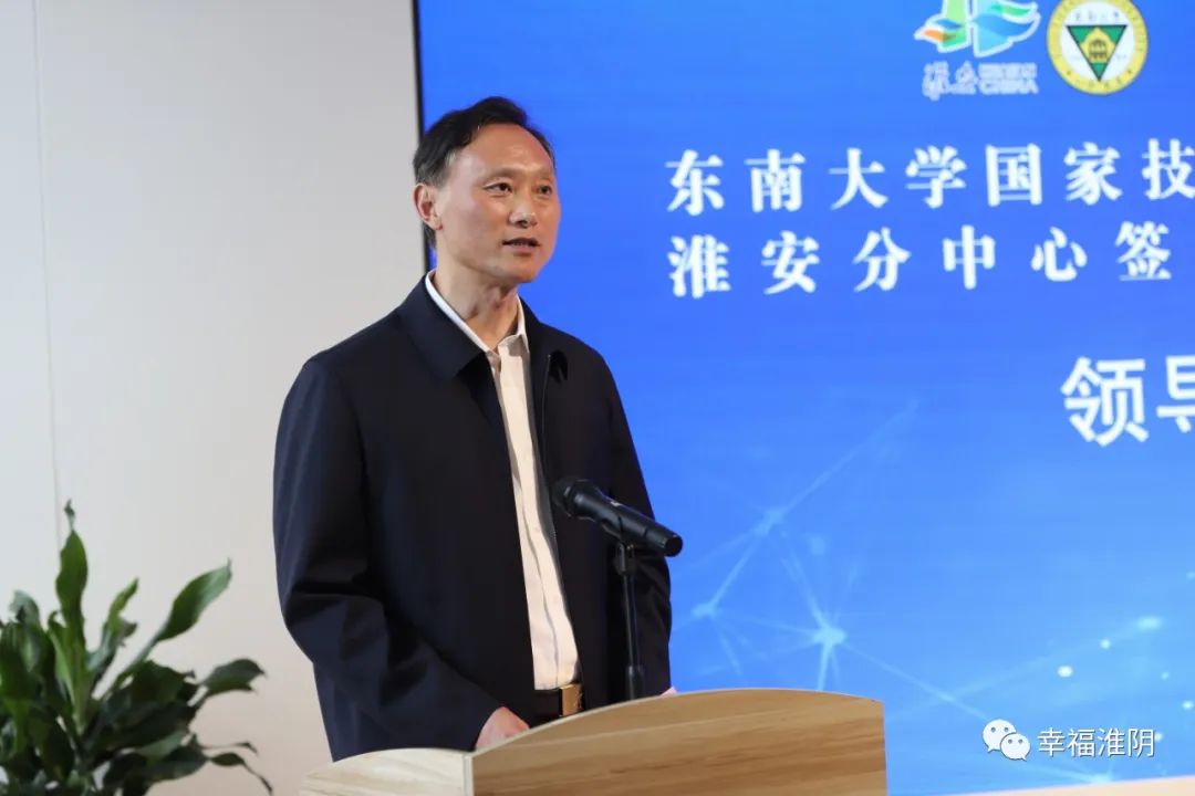 吴刚表示,东南大学历来重视科研与产业的结合,着力解决产业科技难题,积极推进高水平科研成果转化为现实生产力。淮安历史人文底蕴和现代化产业体系的加快构建,为高校院所在淮开展成果转化、产学研合作提供了重要的发展机遇。此次签约和揭牌既是校地融合、加快推进创新驱动发展战略的实践,也是落实《东南大学——淮安市人民政府战略合作框架协议》的实际行动。对推动创新链、产业链、人才链深度融合,充分发挥东南大学人才科研优势和淮安区域产业优势,实现校地协同创新发展,有着重大的意义。我们期待与各位一道紧密围绕淮安产业发展需求,加速集聚高层次科创和人才资源,推进科技创新和成果转化,为淮安高质量发展增势赋能,为把周总理家乡建设得更加美好,作出积极贡献。