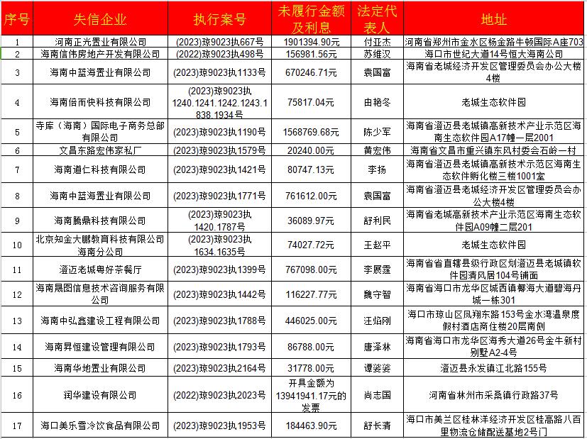 原标题:《澄迈法院发布2023年第五批失信被执行人名单》