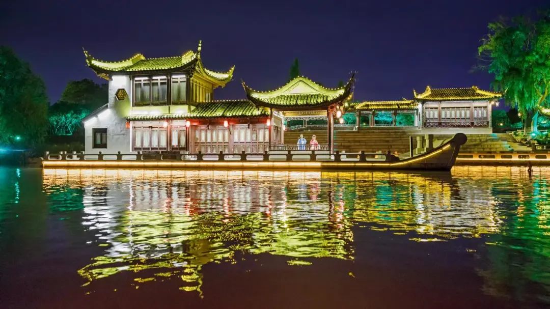 晚上,乘坐画舫