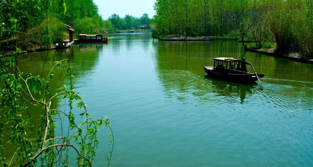 乘着溱湖湿地的摇橹船