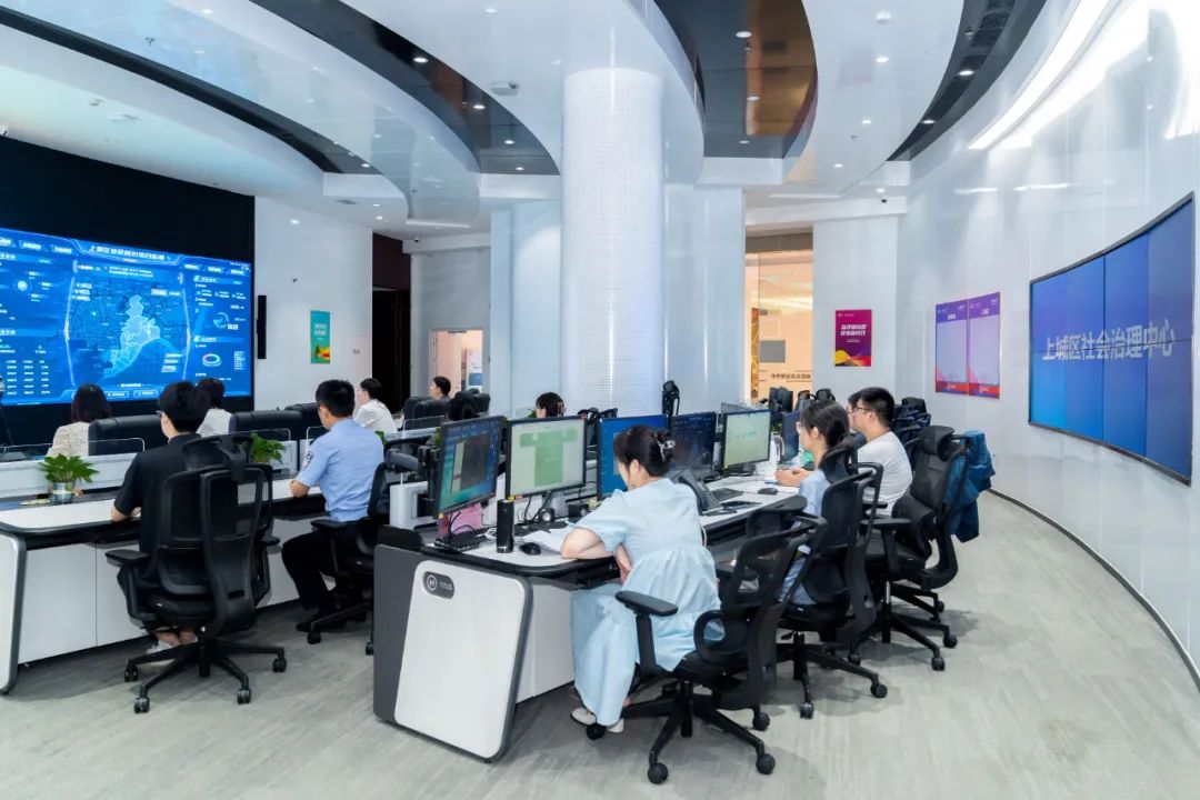 上城区社会治理中心努力打造新时代“枫桥经验”中心城区样板,开展基层治理提质提效“智慧情指”工程,加速“指挥中枢”全面升级,强化基层智治综合集成,统筹党建统领、经济生态、平安法治、公共服务,有效整合人大民意、平安督、金融风险、警网协同、基层应急消防等14个部门业务平台的多跨协同事项,形成纵向贯通、横向协同、执行有力的高效执行链,实现基层运行“一屏统揽”,网格事项“一库感知”、预测预警“实时透出”,推动各类社会治理事件在基层智治综合应用上的流转闭环处置。