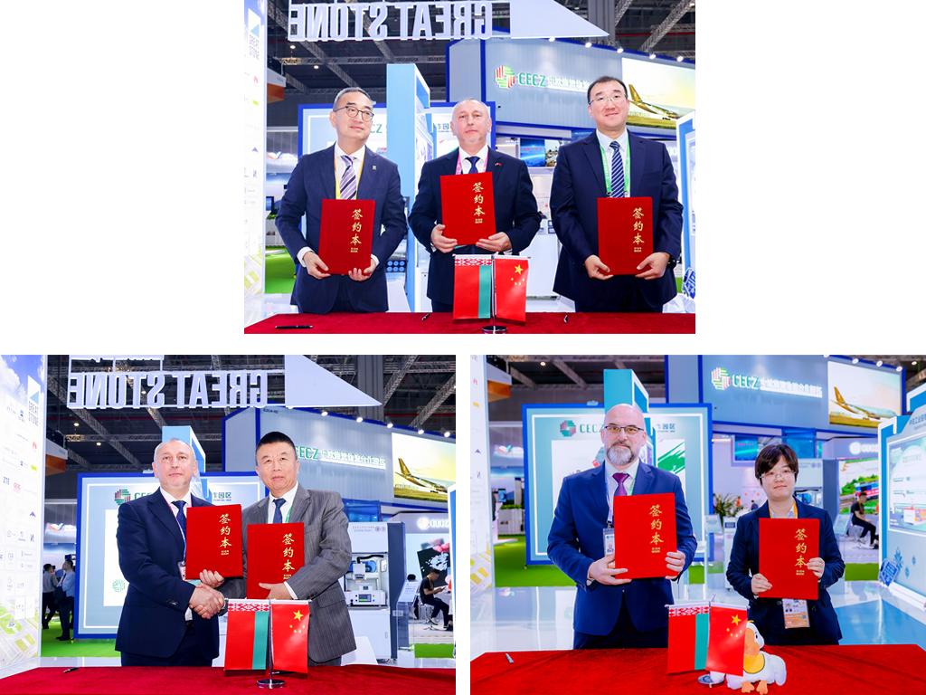 仪式期间,绥芬河市人民政府、中白工业园管委会和园区开发公司签署战略合作协议;园区管委会和中国产业海外发展协会签署合作协议;“白俄罗斯国家馆”与白俄罗斯戈梅利脂肪厂和卢克涅茨乳制品厂签署采购协议。