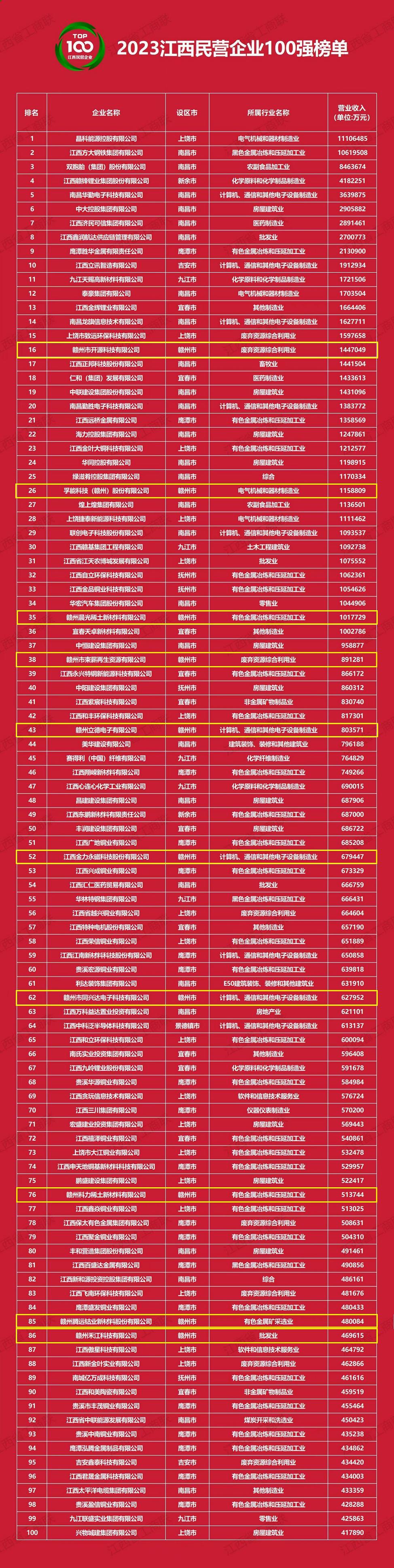 原标题:《江西民营企业100强!赣州10家企业上榜》