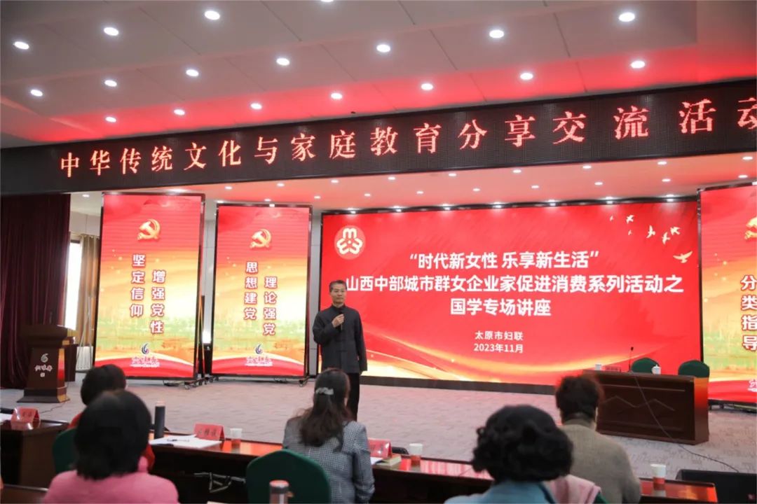 中华儒学会执行会长、山西省当代儒学研究会会长柳河东作了《经典润身心 国学助力精彩人生》的讲座。字字乾坤千字文传习社创始人、“字知道”创始人、喜马拉雅古籍唤醒人蔡红铮作了关于《女性成长之雅言之美》的讲座。本次活动中的国学文化讲座也是太原市妇联、太原市女企业家协会牵头组织的“时代新女性 乐享新生活”山西中部城市群女企业家促进消费系列活动之一。讲座在参加人员中引起强烈反响,大家纷纷表示受益匪浅。