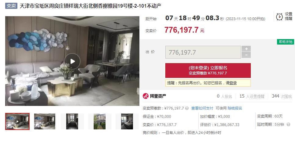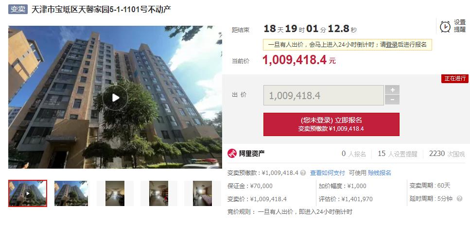 2.标的物名称:天津市宝坻区艺馨佳苑15-1-1501不动产