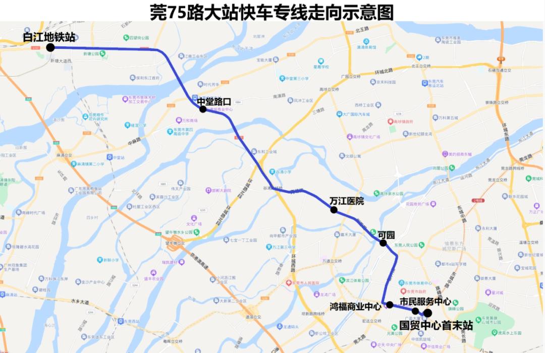 日前,东莞巴士下属城巴公司开通东莞国贸中心首末站至新塘白江地铁站的公交线路——“莞75路大站快车专线”(下文简称“莞75快线”),该快车专线与莞75路走向一致,差别在于比莞75路少停9个站。