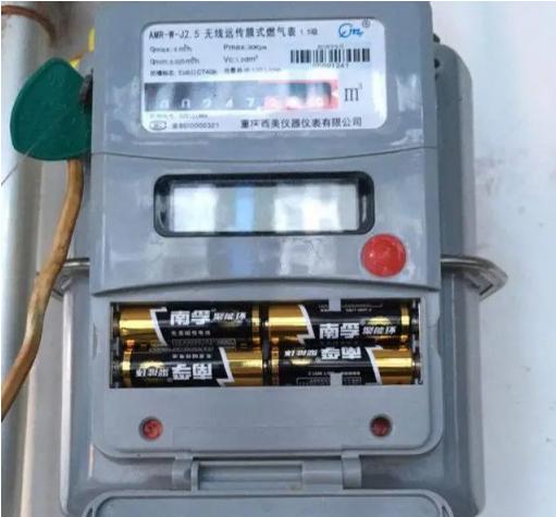 如果你家中使用的是物联网智能燃气表,需要安装电池才能工作,短按燃气表液晶显示屏旁边的按钮出现黑屏或显示电量低,请打开下方电池仓更换4节5号碱性电池。