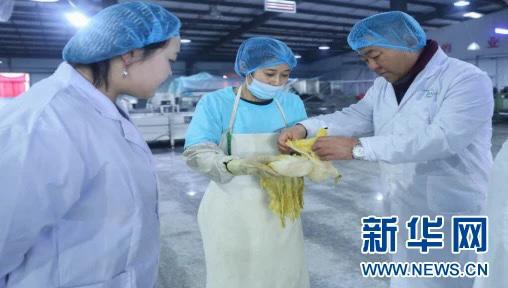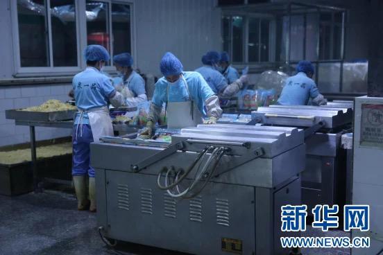 △在酸菜食品加工厂,工人们正在忙碌工作。新华网许志康摄