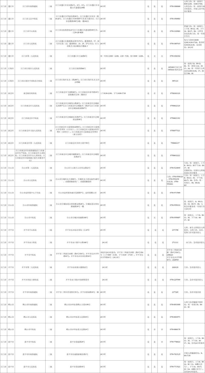 江门市提供儿科诊疗服务的