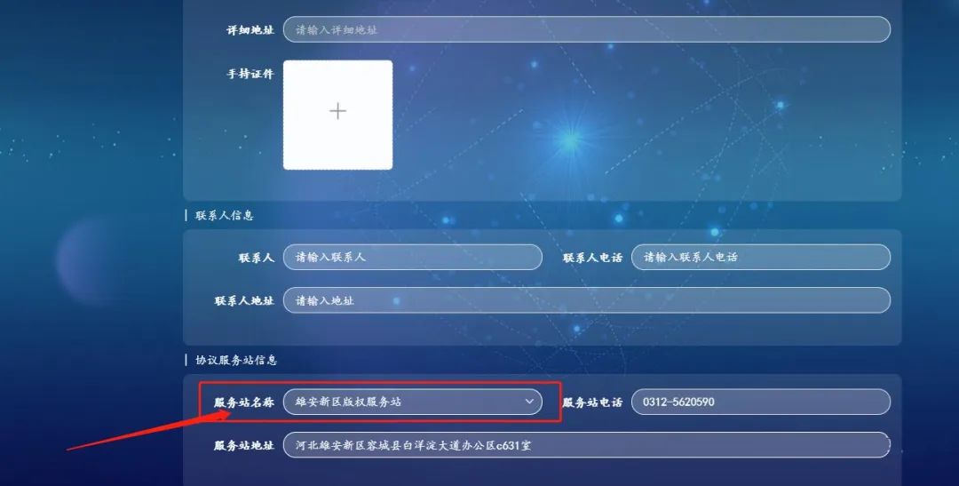 2.实名认证时协议服务站信息 选择“雄安新区版权服务站”