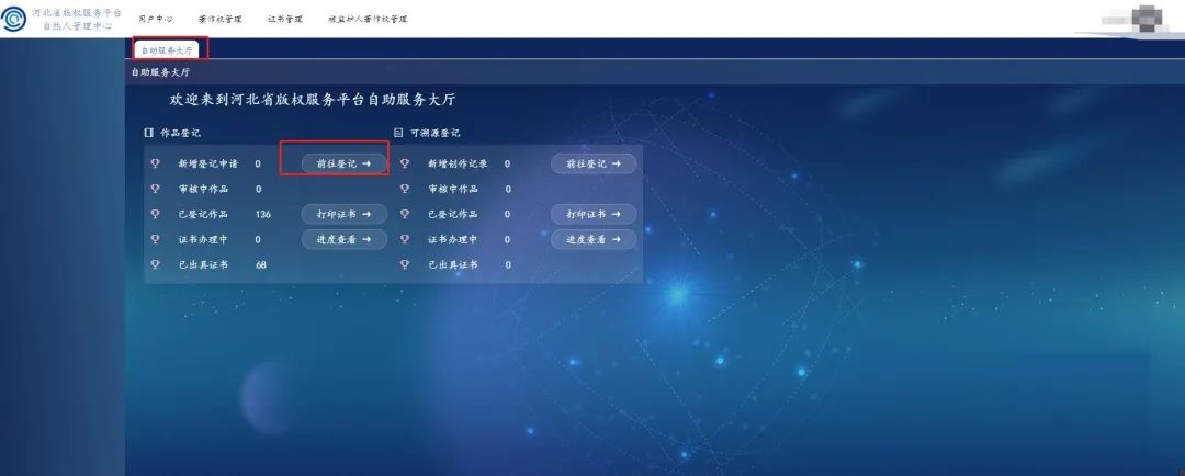 1.进入河北省版权服务平台(www.hebeibanquan.com.cn);