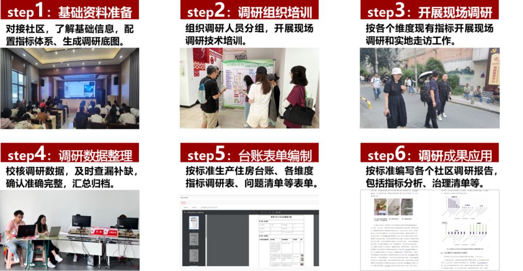 社区维度。与社区、物业工作人员对接,现场填报小区常住人口、楼栋建造时间等基本信息;针对社区内公共服务设施的配套情况开展现场实地踏勘。