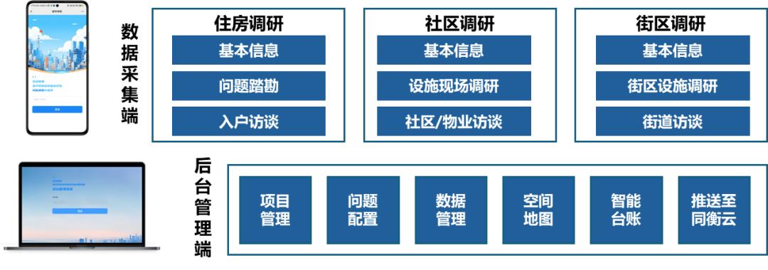 辅助调研报告编制。数据采集平台辅助社区/街区尺度等报告编制,提供地图、统计数据、描述文字、现场照片等素材。