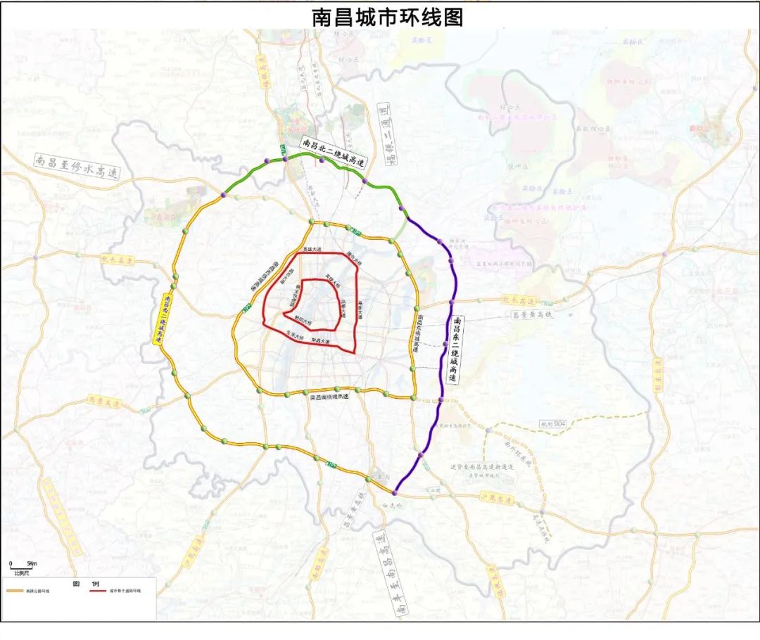 目前,南昌已形成“城市快速路一环线+城市快速路二环线+南昌市绕城高速+南昌市第二绕城高速”的市域“四环”路网。