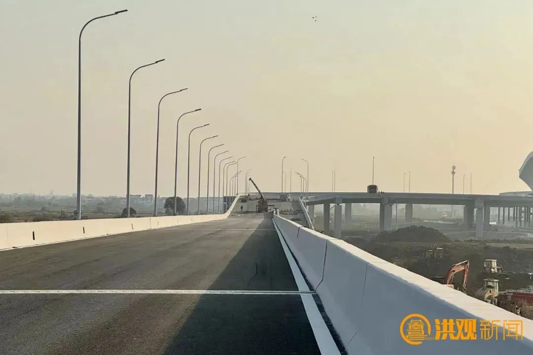据介绍,目前,洪腾高架昌东大道—解放东路段(1.8公里)桥面系已全部完成,沥青摊铺完成90%;上跨南钢专用线工程(0.5公里)桥面系施工完成60%;尤氨路—南昌东站段(2.4公里)正在进行桥面系施工,桥面铺装完成85%,沥青摊铺完成35%。