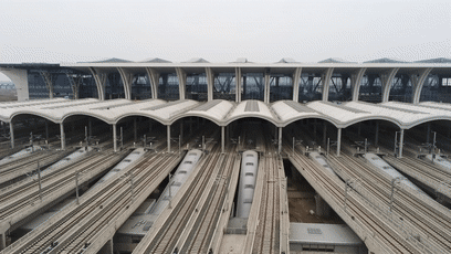 郑州南站是国内首创的“五区联动”的特大型综合交通枢纽,工程总建筑面积48.3万平方米,以“龙跃中原、鹤舞九州”为理念,结合“莲鹤方壶”造型为设计立意。该车站采用了国内首个装配式清水混凝土联方网壳结构雨棚,造型别致,减免维护。郑州南站的建成,标志着河南省在全国率先建成“米”字形高铁网,对地区经济发展意义重大。