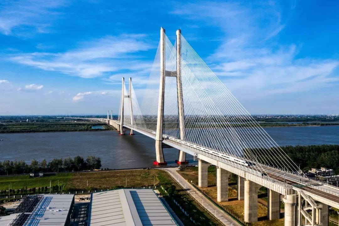 鳊鱼洲长江铁路大桥为主跨672米双塔双索面钢箱-混凝土混合梁交叉索斜拉桥,主跨跨中72米范围内斜拉索交叉布置,为世界首次在时速350公里的高铁线路上采用,是目前跨度最大的四线铁路交叉索混合箱梁斜拉桥。大桥的建成,对于“皖江经济带”“环鄱阳湖经济圈”两大区域经济带的建设起到了积极的促进作用。