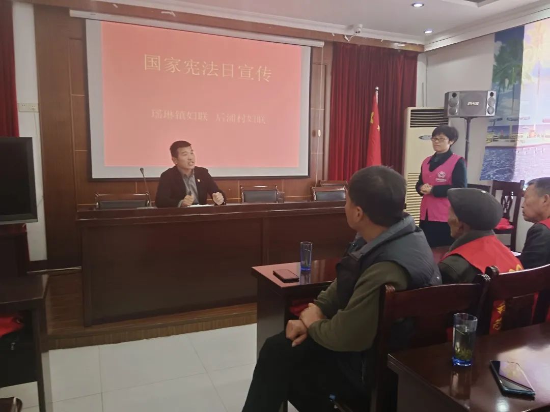 瑶琳镇妇联组织各村通过知识讲座、入户宣传等方式开展“12·4”国家宪法日宣传活动。讲座围绕学习宪法知识、预防电信网络诈骗等内容开展国家宪法日宣讲活动,并对群众关注的法律援助、债务纠纷等问题进行耐心解答,讲解《中华人民共和国宪法》《中华人民共和国民法典》的部分内容,让大家坚定宪法自信,自觉维护宪法权威,增强遵纪守法的自觉性。巾帼志愿者们通过分发宣传单页,用方言沟通拉近距离,以“面对面”普法的方式让村民了解宪法,真正做到送法上门,实现良好的法律普及宣传效果。