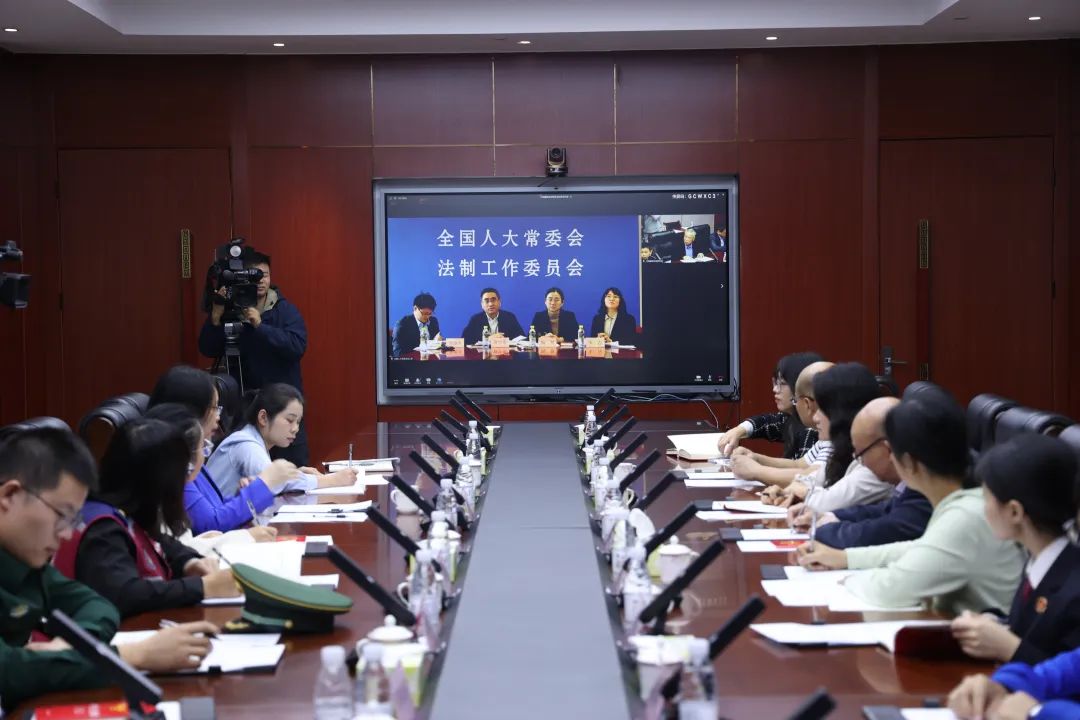 江门市江海区组织不同领域的10名行业代表,通过江海基层立法联系点与全国人大常委会法工委宪法室青年理论学习小组在线对话,用通俗易懂的语言及实践案例普及了宪法在婚姻家庭、未成年人保护、军人权益等不同领域的相关知识,解答了生活中关于宪法的问题,“零距离”感受全过程人民民主。