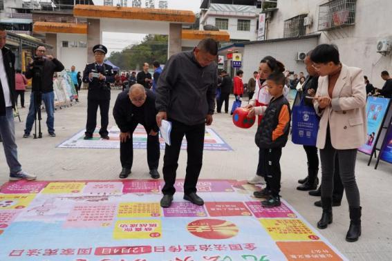 省驻梅州兴宁市径南镇帮扶工作队联合各级普法职能部门,深入县、镇、村的圩镇市场、法治公园等,组织开展国家宪法日系列宣传活动。活动现场设置了宪法宣誓词区、“我与宪法同框”打卡区、宪法地毯游戏区、宪法知识问答区等区域,让群众在“法治体验”中学习法律知识。