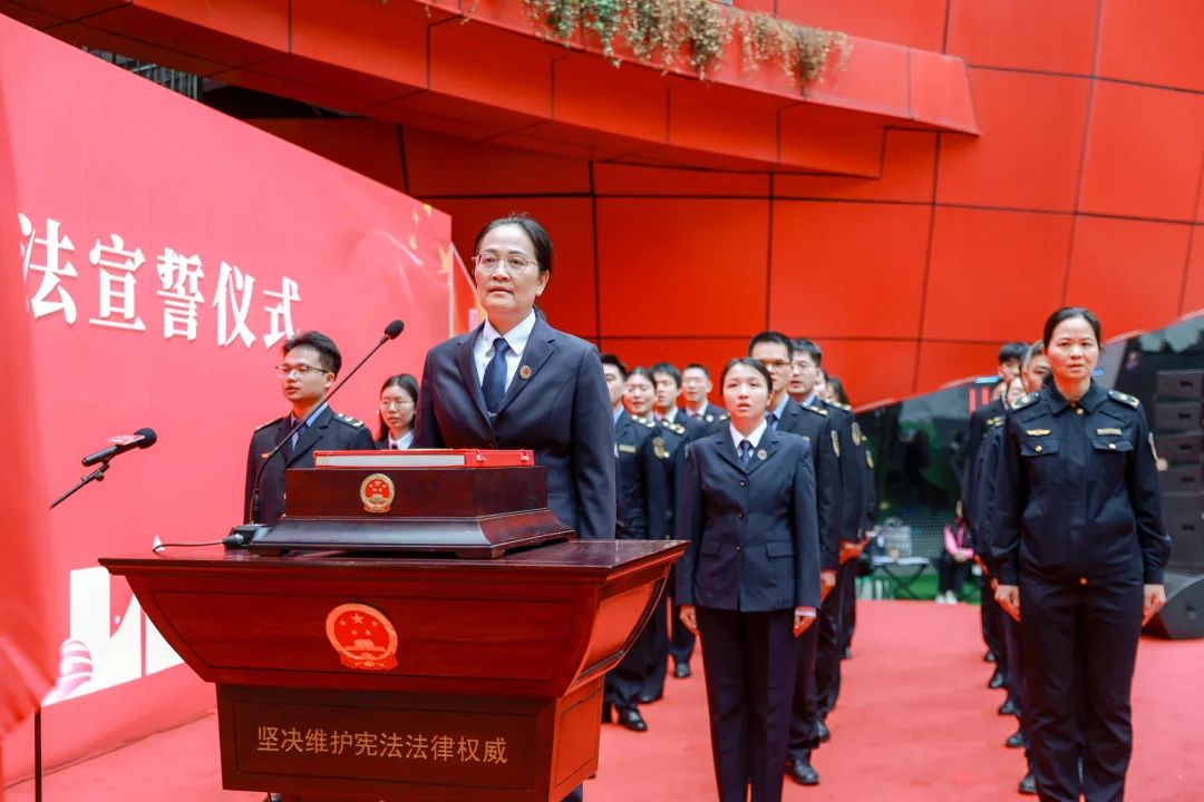 广州市白云区在广州湾区中央法务区白云中心区的红点广场举行宪法宣传活动,现场分为参观宪法宣传展、参观普法集市、宪法宣誓仪式、法治文艺汇演等环节,吸引了众多市民驻足观看。