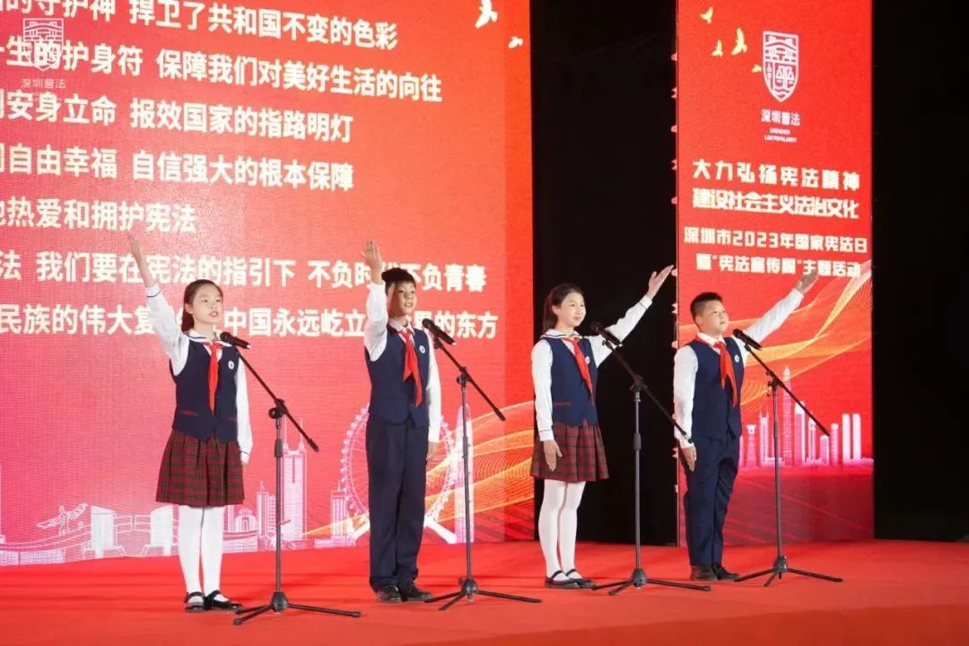 深圳市邀请四名优秀普法小使者,一起诵读《宪法在我心中》,让青少年在朗诵中体会到宪法的庄严与神圣。