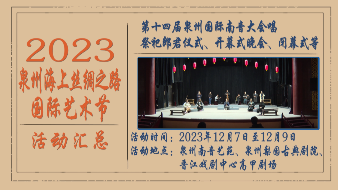 来自新加坡、马来西亚等国家和地区的13个海内外南音社团将分组,轮流到泉州南音艺苑、泉州府文庙李文节祠、晋江五店市、晋江祖昌音乐厅进行10多场交流联合演出。