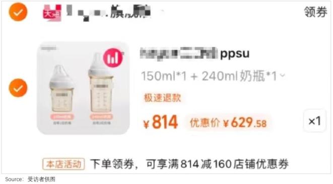 看着自己的购物车里,2个原价800+的奶瓶,娜娜有些不敢相信自己的眼睛,“不就是几个瓶子吗,凭啥卖这么贵!”