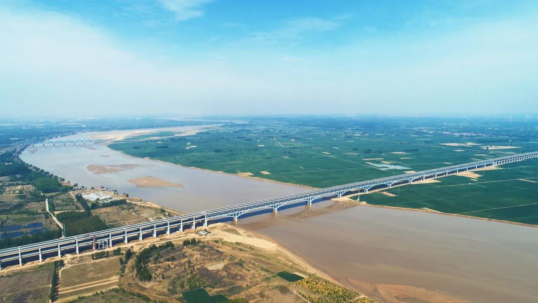 由中铁设计勘察设计,中铁大桥局、中铁七局、中铁工业旗下中铁九桥参建的济郑高铁郑州万滩黄河公铁大桥位于京港澳高速黄河大桥下游3.5公里处,大桥全长2016米,为公铁两用、三桥合一桥梁,一举创造了国内目前无砟轨道钢桁梁桥建设规模最大(2016米)、温度跨度最长(616米)、运行时速最高(350公里/小时)三项“国内之最”。