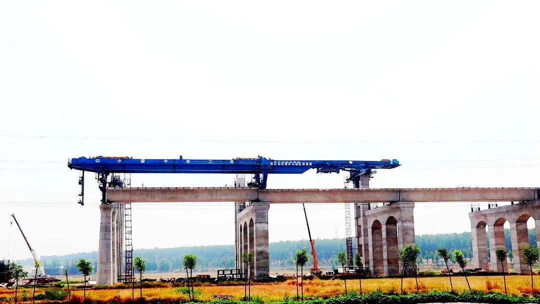 由中铁二局原阳制梁场预制的40米铁路简支箱梁采用JQS1000型千吨级架桥机架设,是我国大跨度(40米)铁路简支箱梁架设技术在国内的首次工程化应用,在我国铁路箱梁建造及施工技术领域具有里程碑意义。JQS1000型千吨级架桥机则是由中铁工业旗下中铁科工研制,顺利完成了全线338榀40米箱梁的运架任务。