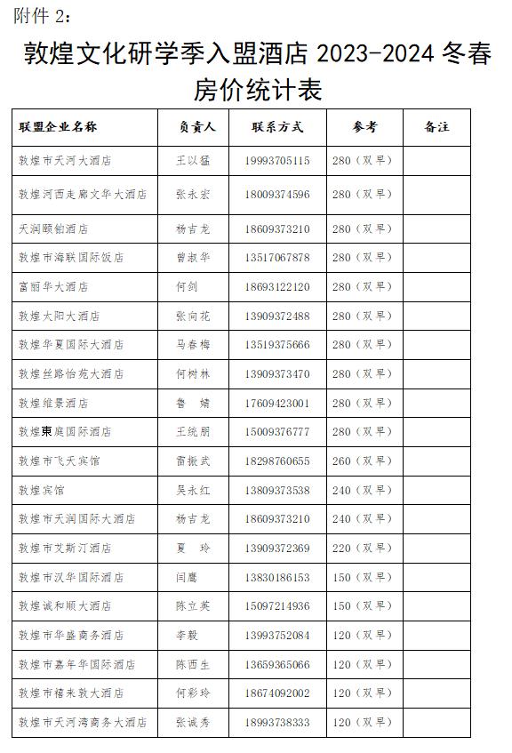 2.敦煌文化研学季入盟酒店2023-2024冬春房价统计表