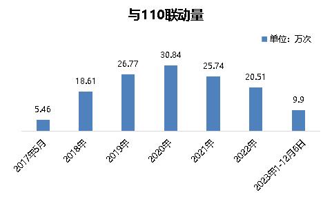 自2017年启动联动工作以来,12348热线累计接收110报警服务台转介来电约137.83万通,年均增长9.0%,引导大量矛盾纠纷通过法律途径得到化解的同时,大大减轻了公安机关的出警压力。