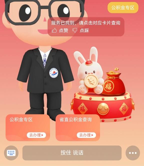 2.首页点击小赣事,语音或文字输入公积金专区,点击进入专区,完成扫脸认证。