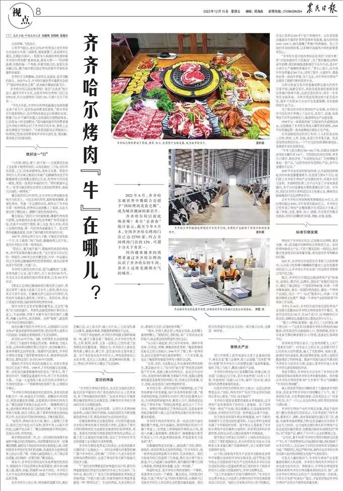 为了推动齐齐哈尔烤肉的产业发展,齐齐哈尔市不仅在肉牛养殖上下足功夫,在加工、流通、电商等各个环节也持续发力,推动烤肉全产业链发展。
