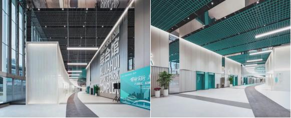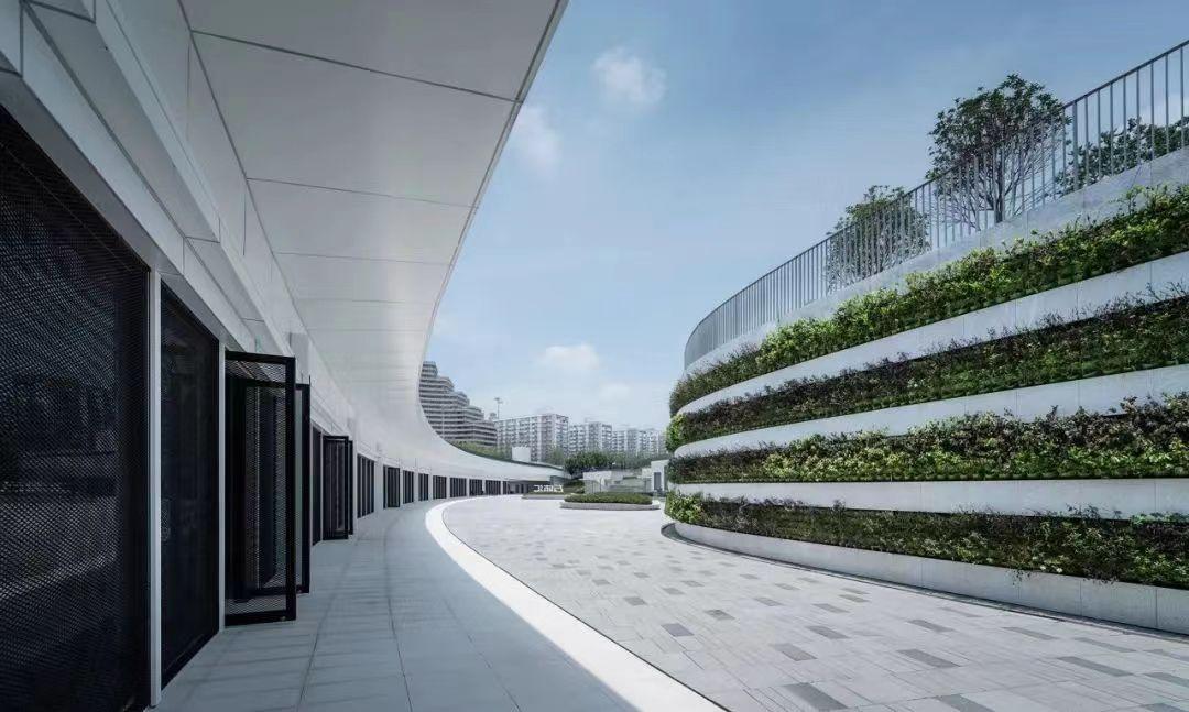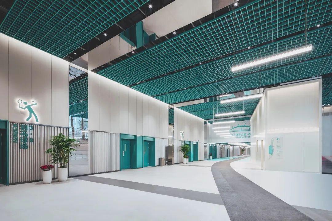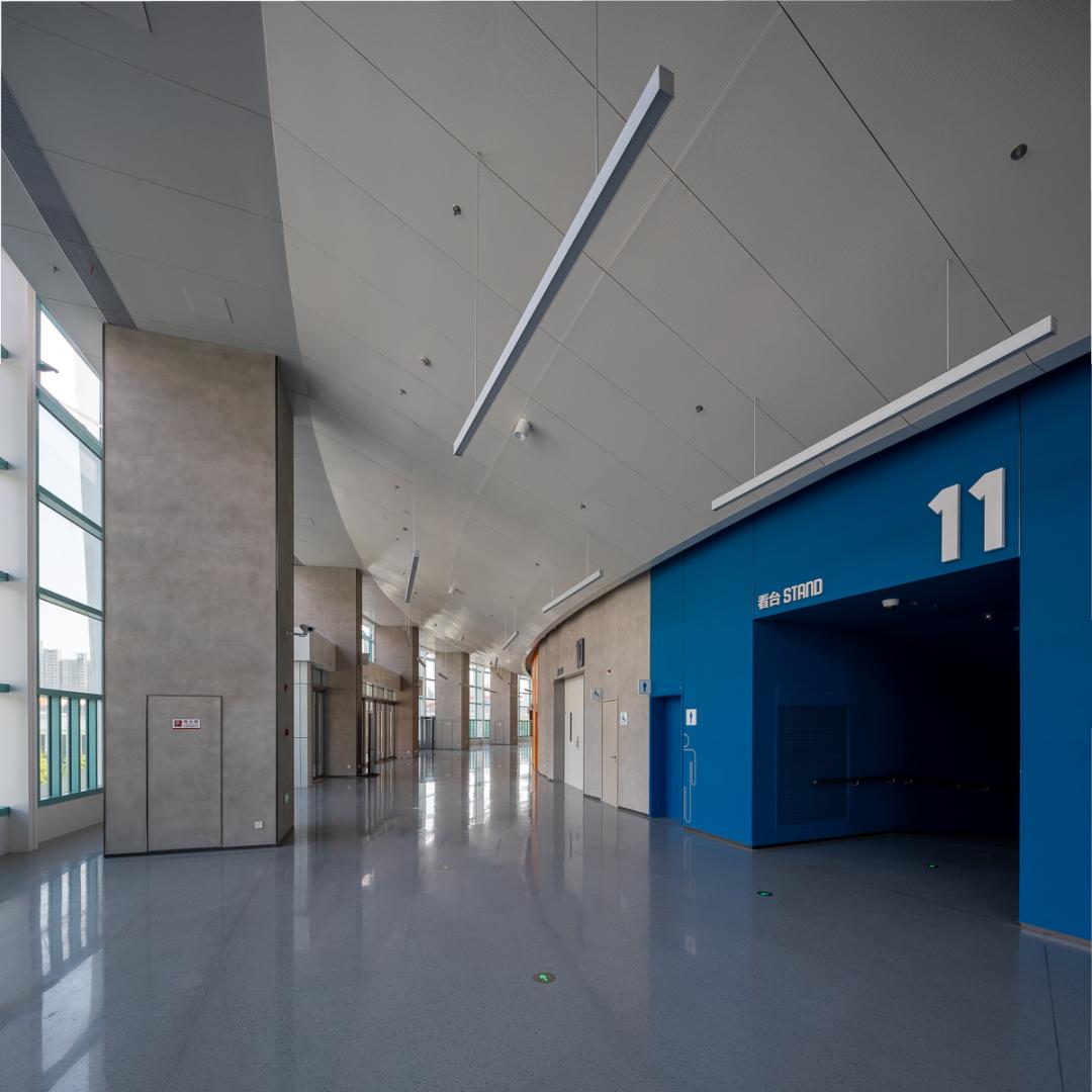 基地西南侧还建设了一栋地下综合场馆,定位于全民健身、运动培训及配套服务。其缓缓升起的屋面毫无违和感地融入周围环境的肌理之中。