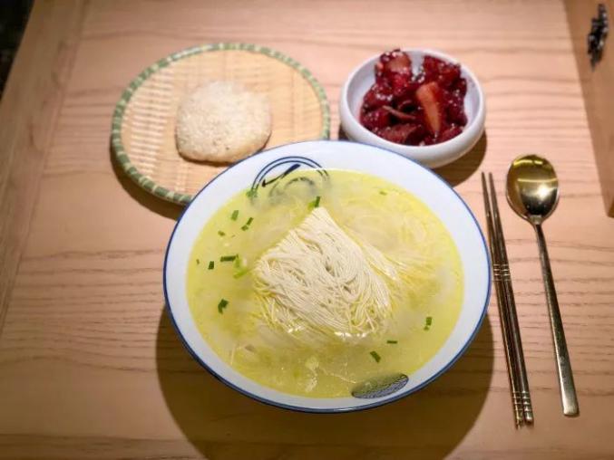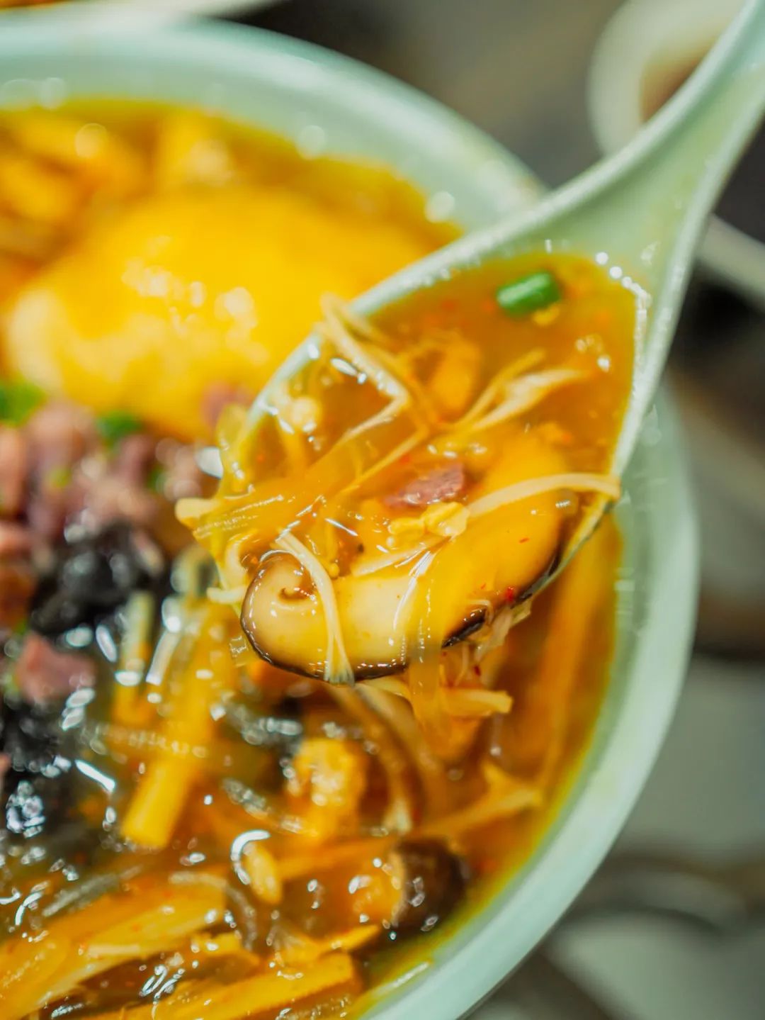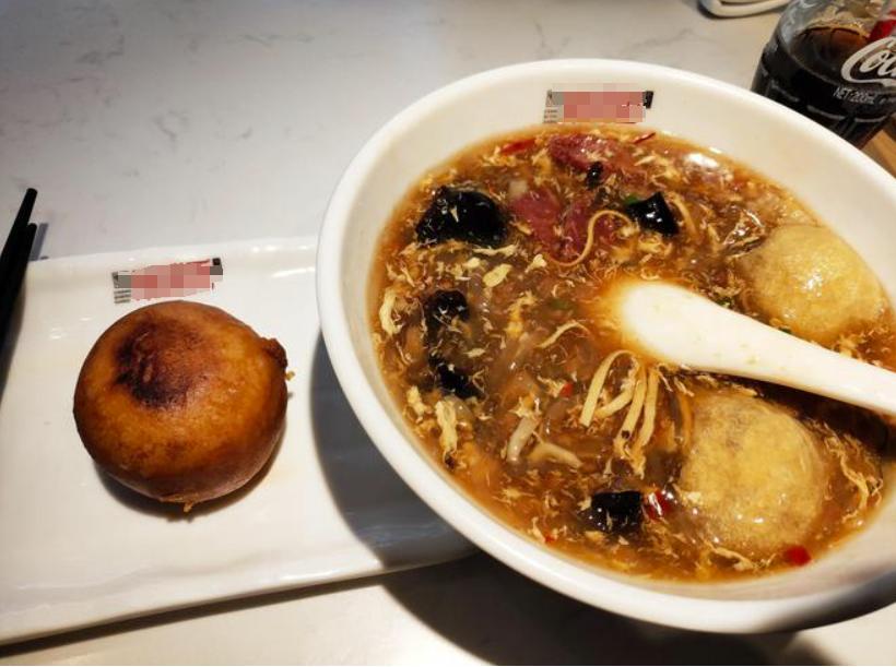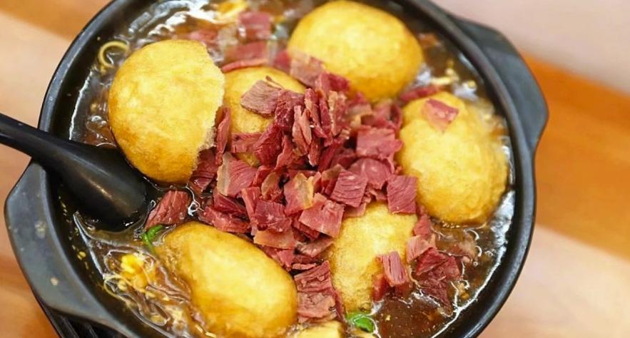 丝丝缕缕的蛋花加上碎牛肉,油面筋