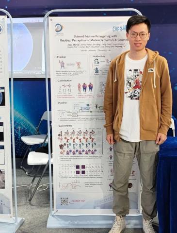 压力虽大,但收获亦是显著。实习期间,张嘉旭取得了颇为丰厚的科研成果。在犀牛鸟基金项目中,他和老师们致力于研究虚拟动画角色的运动重定向,这一技术可以有效减少虚拟角色运动捕捉成本,提升AIGC内容创作效率。作为项目的主要完成人,张嘉旭个人完成了两篇论文并分别入选人工智能顶级会议CVPR2023和ICLR2024(在审),也因此获得了腾讯的技术创新奖。时至今日,即便实习已经结束,他与腾讯PCG仍然保持着密切联系,和对方以合作者的身份一起做研究,以期在相关领域取得更大的突破。