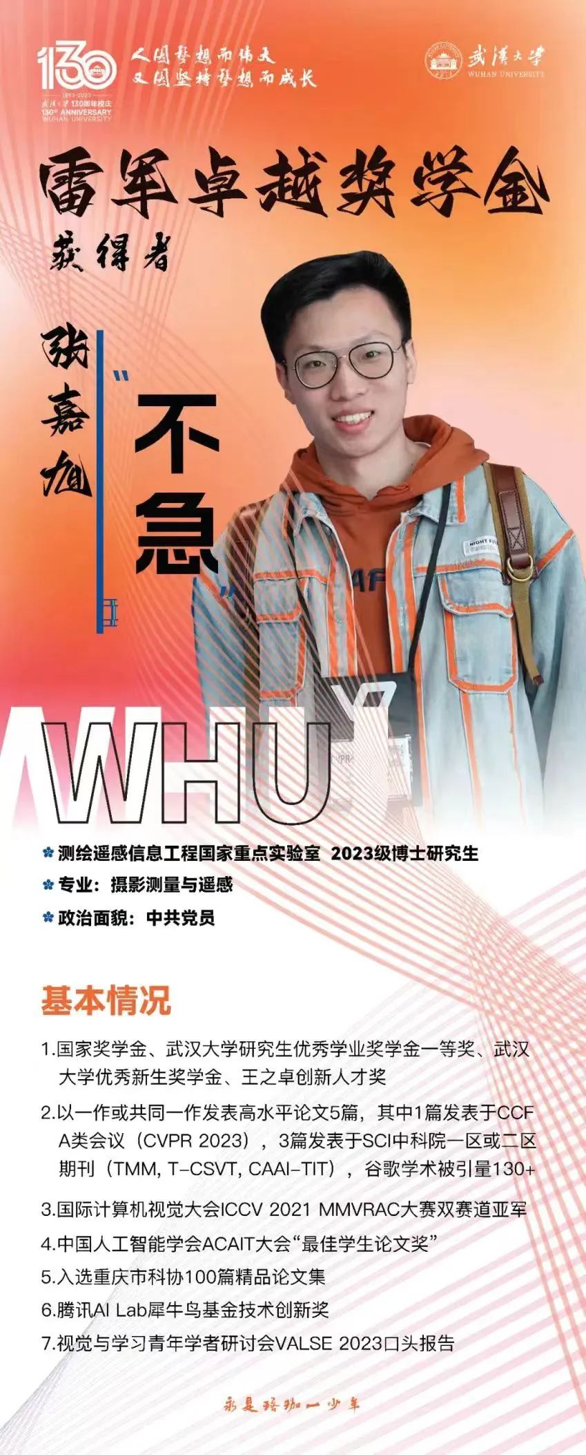 何为“不急”?对张嘉旭来说,这是一种平静的心态,是直面挫折不放弃不退缩的拼搏精神、是相信努力终有回报的坚定信念、是对未来发展方向的清晰规划。他将自己成就的取得总结为“兴趣”二字,选择感兴趣的方向,热爱可抵岁月漫长。将这份对学习、对生活、对科研的热情保持并延续下去,就能少一些逃避和拖延,多一份坚持与直面困难的勇气,如此,方能行稳致远、进而有为。
