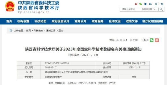 原标题:《陕西省2023年度国家科学技术奖提名开始啦》