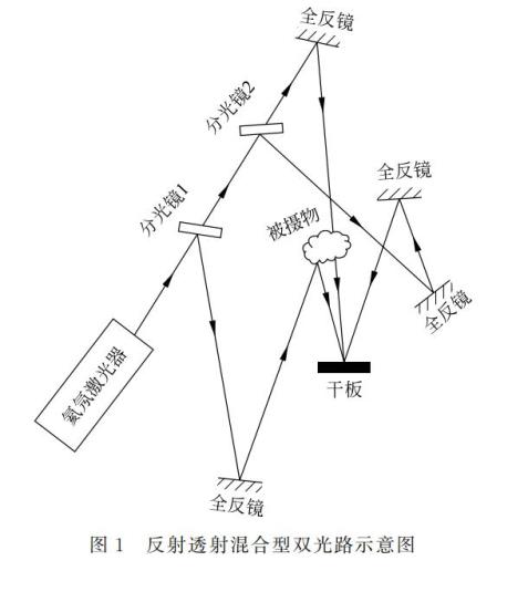 考虑上述因素,初步设计出反射透射混合型双光路,并通过实验,不断调整、优化光路,最终得出如图1所示光路:(注:图中未画出三个扩束器所在的位置)。