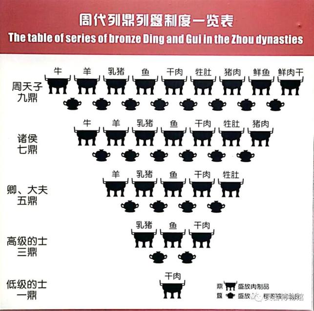 据《礼记》记载:“礼不下庶人”,《公羊传·桓公二年》何休注:“礼祭天子九鼎,诸侯七,大夫五,元士三也。”鼎以及伴随的其他铜器如簋等都是贵族的专利品。这种用鼎制度以陪葬礼器组合来“明贵贱,辨等列”,最早萌于西周早期。商代虽然用鼎随葬,但无规律。西周礼制完善,用鼎逐渐形成一定的规律,例如白草坡1号墓用方鼎五、圆鼎三、簋三,合于西周礼制。西周中期,用鼎制度趋于成熟,西周晚期至春秋早期用鼎制度最为盛行。从西周中期开始,改变了以酒器为主要礼器的礼制,用鼎制度成为周礼中埋葬制度的重要组成部分。在初期,用鼎的数量与墓主人的身份是一致的,到春秋中晚期发生了变化,越礼的现象开始出现。随着春秋社会变革的加剧,“礼乐崩坏”现象加剧,用鼎制度也遭到了破坏。