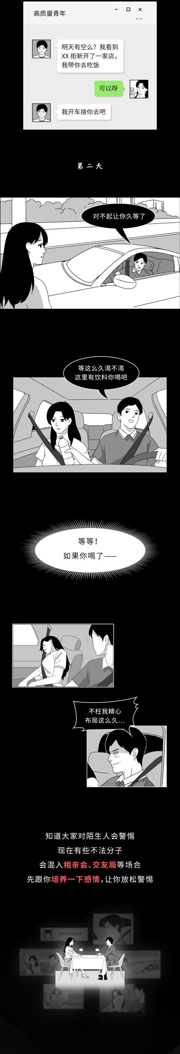 出门在外不要随便接受陌生人给的食物、饮品、香烟等,长期离开视线的饮品、食物最好不要再食用。即使是认识的人也要保持几分警惕,要记住,熟人也有很大的作案几率。