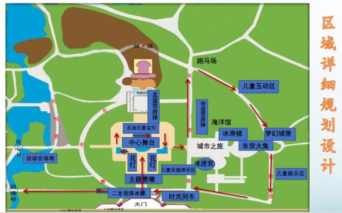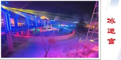 冰迷宫——利用现有迷宫造型,内部地面铺设冰砖,内嵌安装彩灯,夜幕下仿佛行走于星际之间。